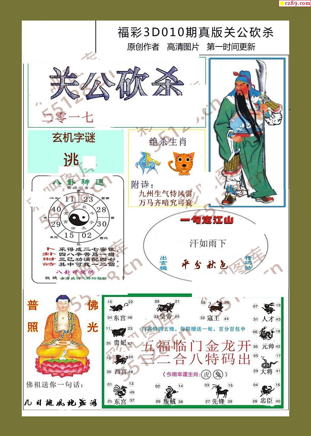 首页 > 福彩3D图谜 > 26年010期福彩3d关公砍杀图